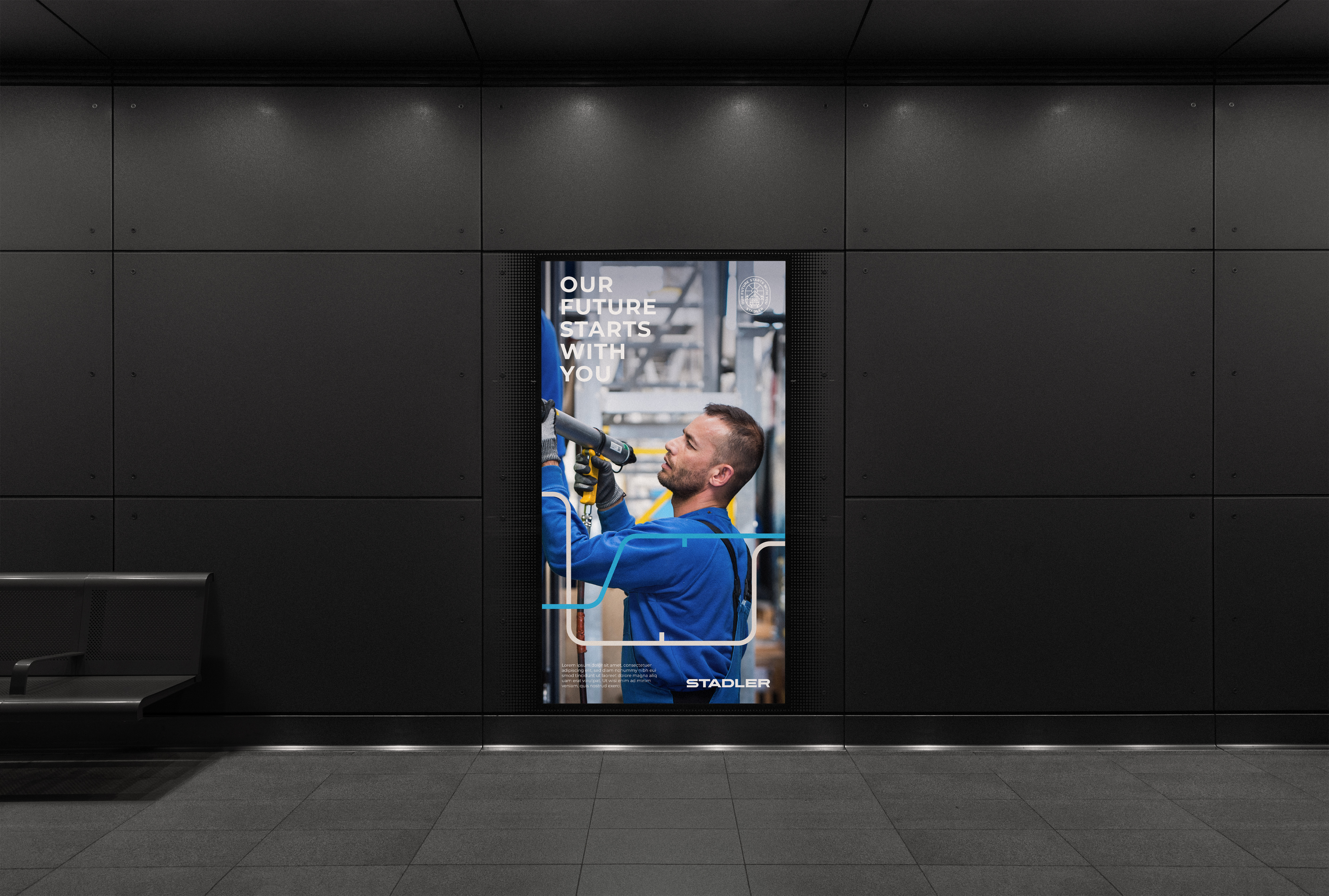 Stadler Rail, som grundades 1942, har länge varit en ledande schweizisk tillverkare av motorvagnståg för regional och lokal trafik, spårvagnar, järnvägsvagnar och lok, med huvudkontor i Bussnang och fabriker i flera europeiska länder. När vi tog fram den nya arbetsgivaridentiteten utgick vi från Stadlers starka ingenjörstradition och långa historia, men formgav ett uttryck som kändes modernare, renare och mer framtidsinriktat. Resultatet blev en identitet som bar vidare företagets arv samtidigt som den tydligt speglade Stadler Rail som ett innovativt företag.